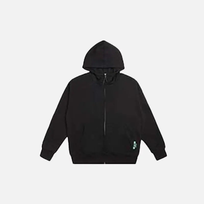 Y2K Zip Cardigan Hoodie in Solid Black for Effortless Style