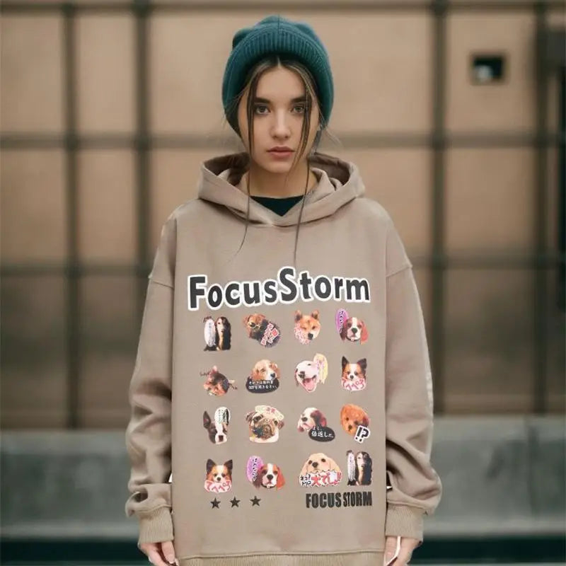 With its unique dog frame emoji design, this sweatshirt is a must-have for any outdoor enthusiast. fashion Y2K. It adds a fun and trendy touch to any outfit, making it a versatile item for your wardrobe. Whether you're running errands or hanging out with friends, this sweatshirt is sure to stand out.