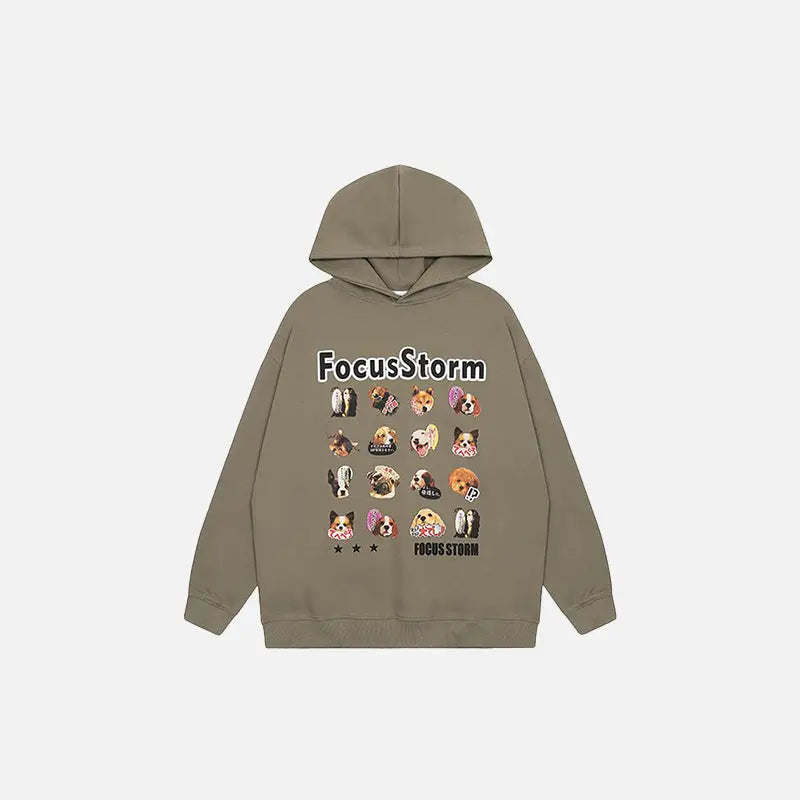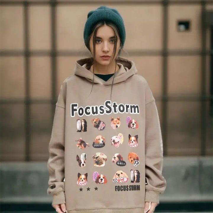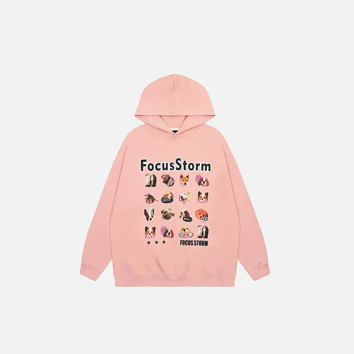 Y2K Emoji Dog Frame Hoodie for Stylish Streetwear Comfort
