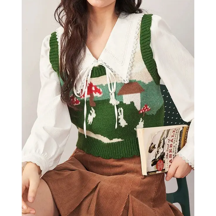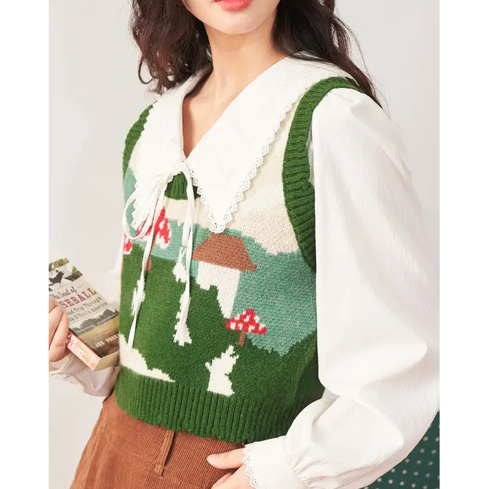 Green Mushroom Aesthetic Knit Vest for Unique Style