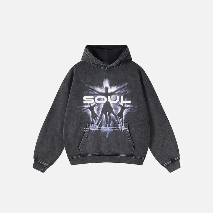 Add a touch of vintage style to your wardrobe with this Retro Vintage Soul Shadow Graphic Hoodie Y2K. Featuring a vibrant print, this hoodie is both stylish and comfortable thanks to its cozy blend of COTTON and polyester. The hooded collar brings a casual cool touch to the overall design.